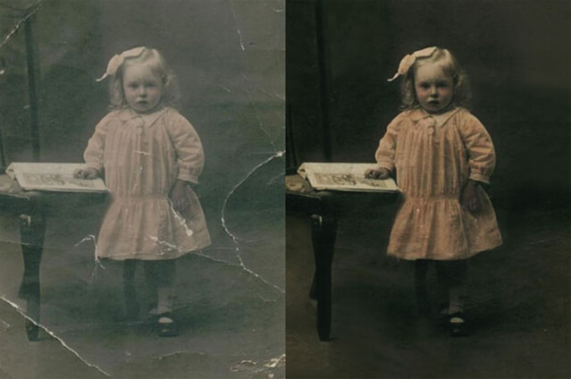 Restore old photos to their original splendour. Repair heavily damaged photos.